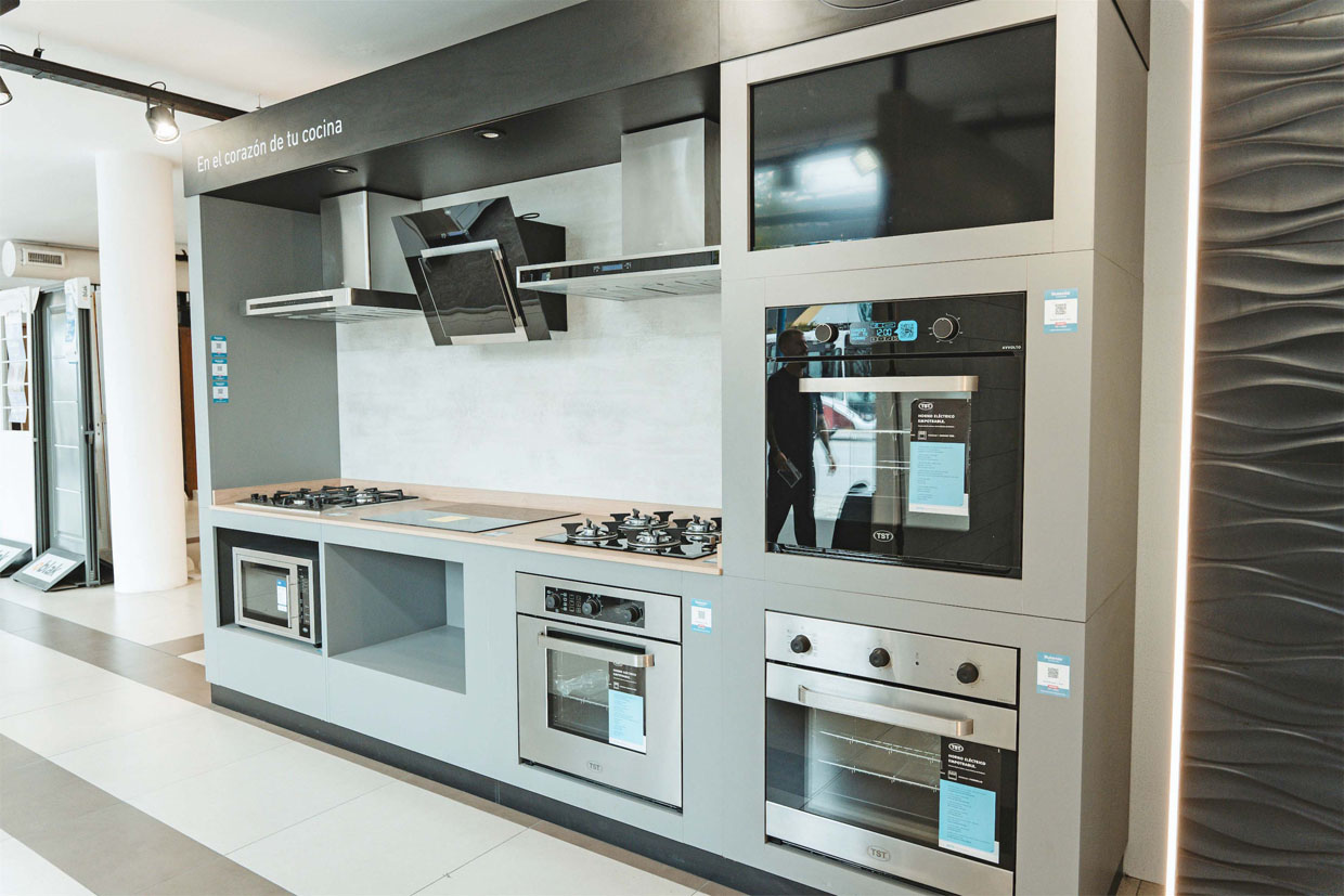 El local tiene mil oportunidades, está emplazado como un ecosistema envolvente que comienza con exhibiciones de baños, luego pasas por revestimientos, para continuar con sanitarios, griferías, sector de cocina, campanas, hornos, terminaciones alternativas como WPC, SPC y demás, se termina el recorrido con el sector de parrillas, calefacción a leña y muebles de exterior.